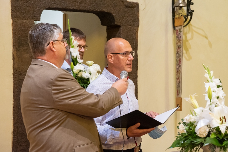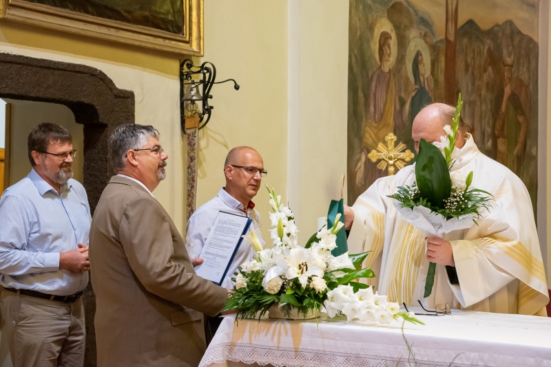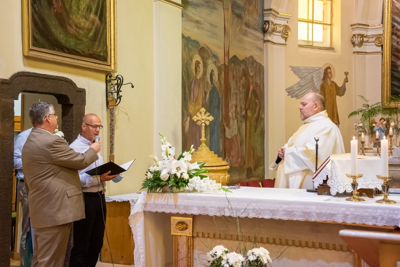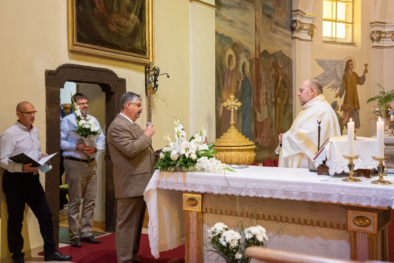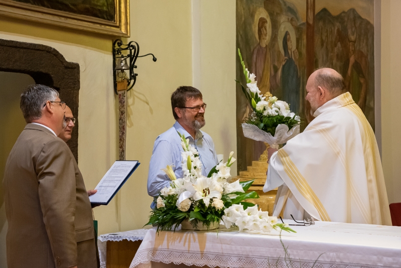Az Eucharisztia ünnepén, Úrnapján köszöntötte Gábor atyát Kollár Csaba világi elnök, Czibolya Gábor és dr. Kocsis András abból az alkalomból, hogy a napokban ünnepelte pappá szentelésének 30. évfordulóját.