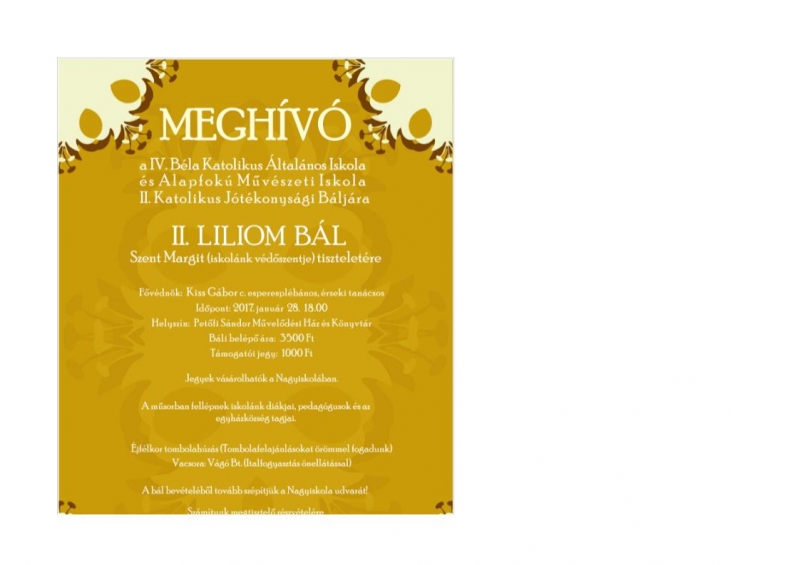 A IV. Béla Katolikus Általános Iskola II. Katolikus Jótékonysági Bál .